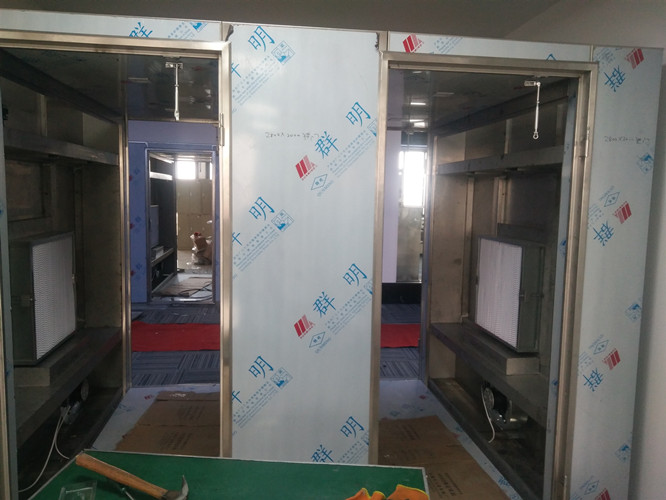 風(fēng)淋室是人進入潔凈室所必需的通道,它可以減少進出潔凈室所帶來的污染問題,減少由于人貨進出帶來的大量塵埃粒子由潔凈室的入口處安裝功能齊全的“氣閘室”可以減少空氣污染微粒的數(shù)量,當(dāng)人貨通過風(fēng)淋室時,污染微粒被經(jīng)過高效過濾的高度潔凈空氣射掉,25m/s以上的高風(fēng)速確保了有效的噴射和飄移微粒經(jīng)過初效和高效兩級過濾器基本過濾掉。為了保持風(fēng)淋的安全使用,維持潔凈室環(huán)境的潔凈度。