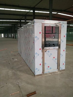 風淋室是利用風機進行暴風洗滌,將空氣送入過濾器再到我們熟悉靜壓箱,最后將干凈氣流從風淋室的噴頭噴出送出,這樣很到地除去了附著的員工身上的灰塵,塵埃被氣流吹下再回流進入初效空氣過濾器當中。